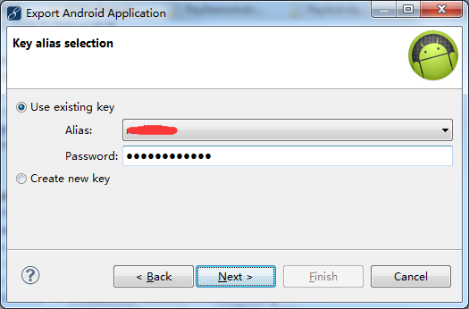 a)通過(guò)Eclipse的導(dǎo)出功能導(dǎo)出帶簽名的apk(生成key,用key對(duì)APP進(jìn)行簽名)